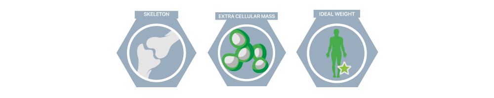 Extra Cellular Mass - Includes bone, cartilage, ligaments, and non-metabolically active tissues, along with extracellular water.