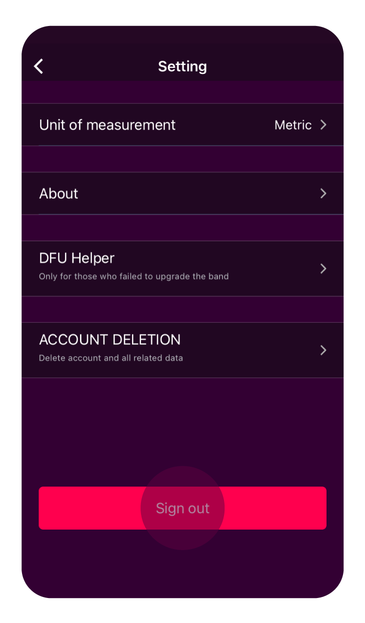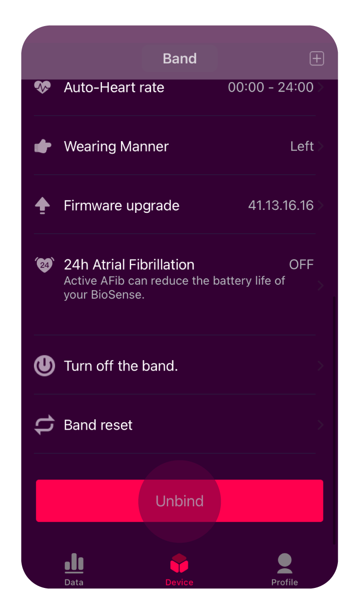 3. At the bottom of the page you will find the "Unbind" option, click it and unbind the Health band.