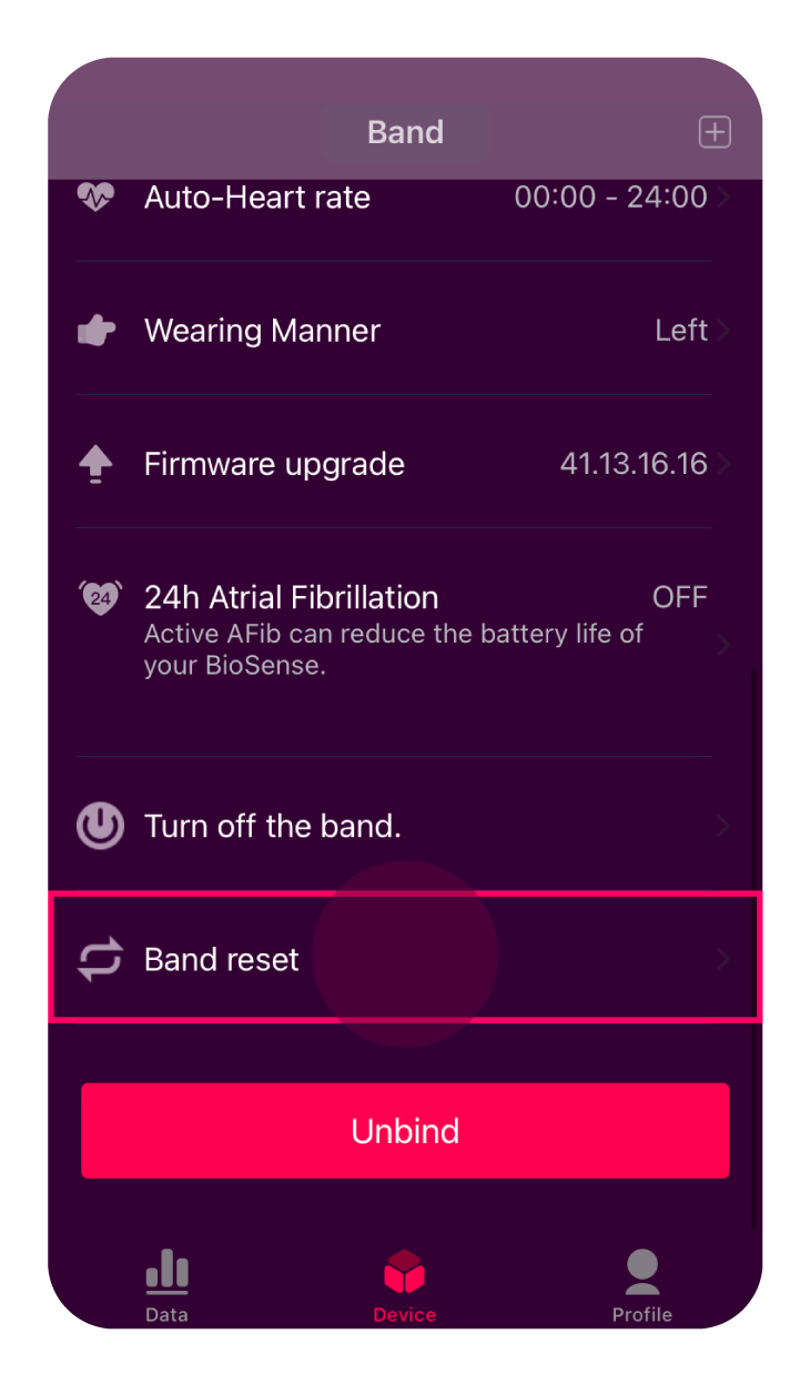 2. Scroll to “Band reset”. Tap on it.