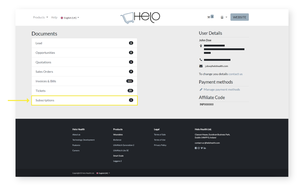 If you have enabled the AutoRenew function on your Wellness+, the system automatically proceeds to the payment of the necessary amount by following the list of payment methods you previously set in your account on the shop.helohealth.com.