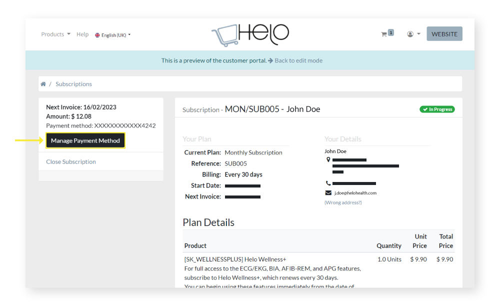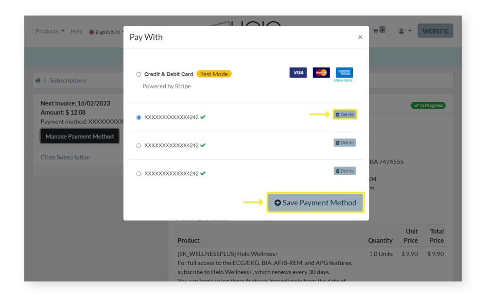 Read here to learn how to change the HeloHealth Shop payment method in your User Details.
