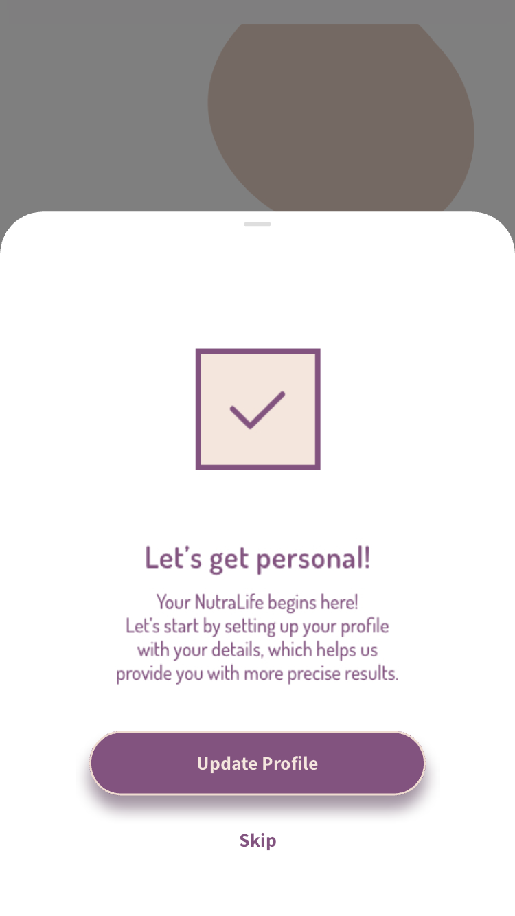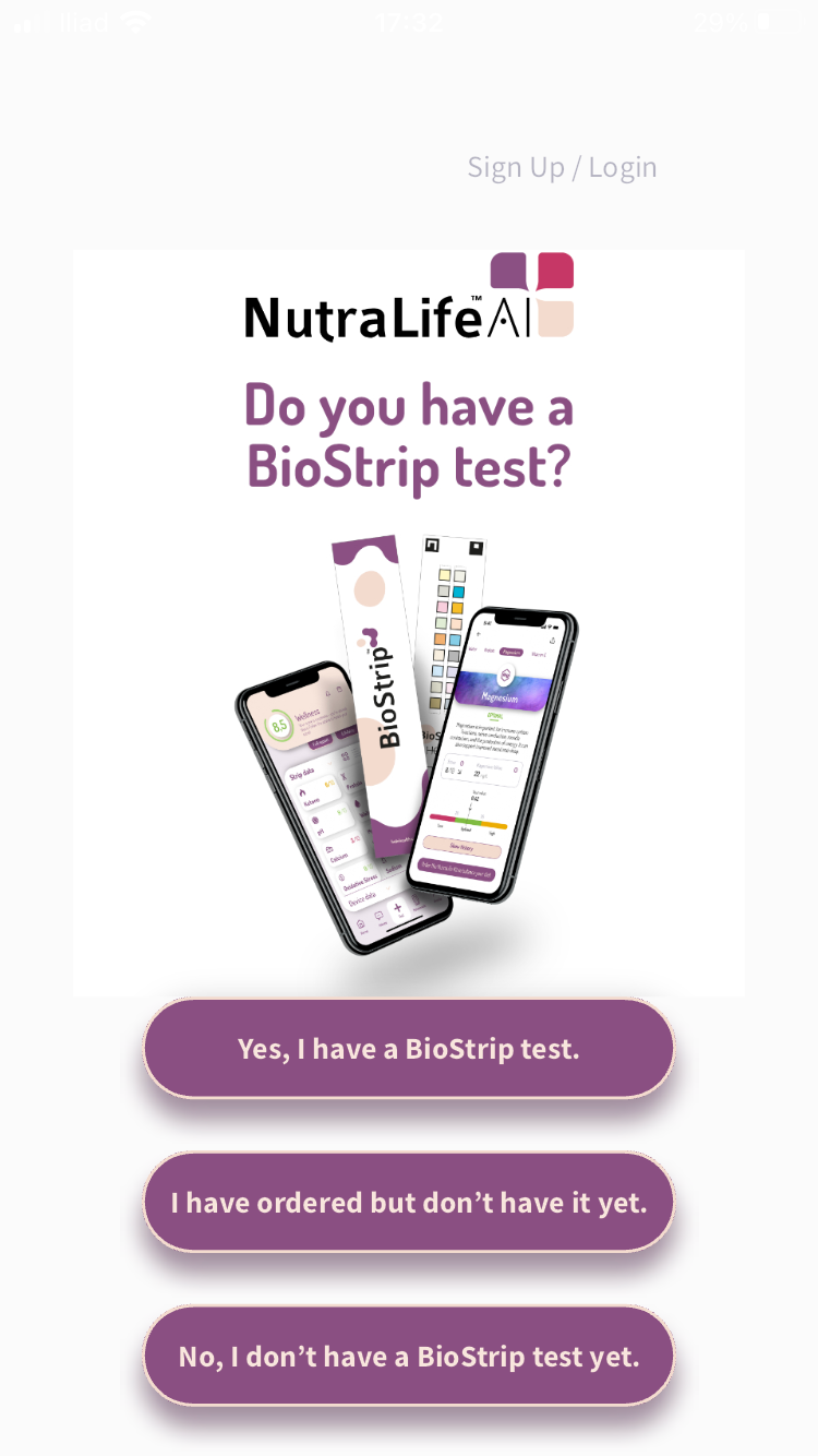 1. Open the NutraLife App. In the first page you can choose between three options to start: