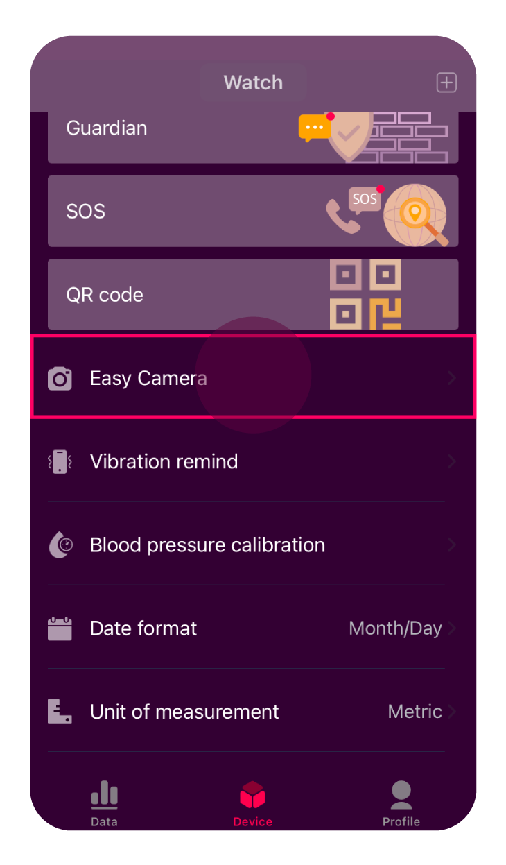 此功能讓您可以使用裝置輔助手機拍攝照片,當您需要從遠處自拍時將非常實用,因為您可以在裝置上點選鏡頭圖示來拍攝。