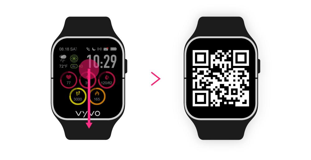 一旦您在應用程式的 QR 碼功能中上傳了圖像 ,將顯示在您的 Watch 2 的錶面主螢幕上,只需用手指在主螢幕向下滑動後,於生活質量指數、步數和VSC頁面後,即可看到您的圖片。