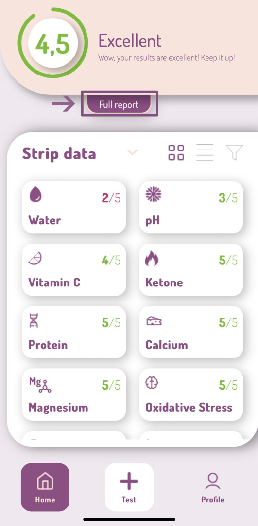 非 NAP 參與者的結果僅以表情符號顯示,且不提供蛋白質和葡萄糖的檢測結果。加入 NAP 的參與者將能夠查看完整的檢測報告,包括蛋白質和葡萄糖的檢測結果。 了解更多 NAP 計劃詳情 →